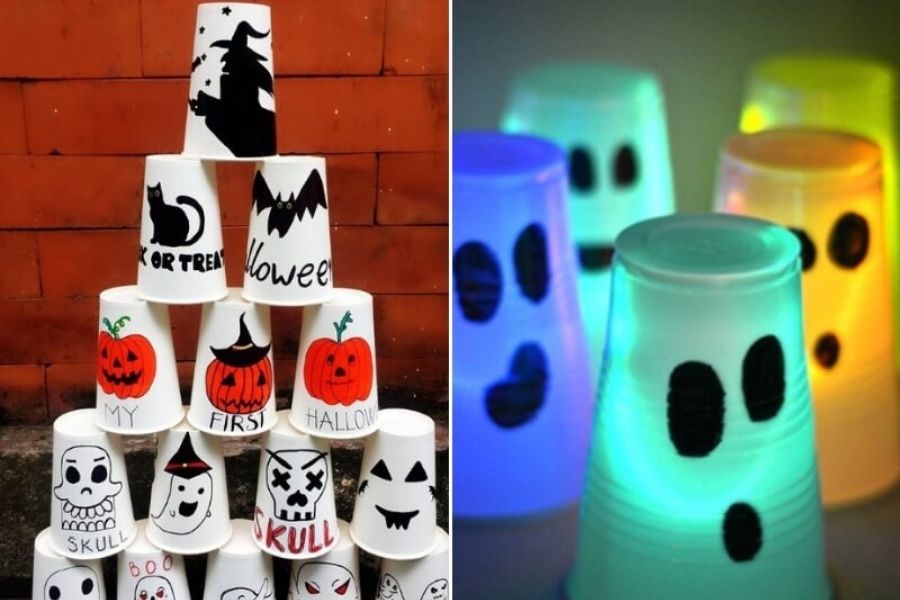 Bạn hãy tận dụng những chiếc ly, cốc nhựa đã qua sử dụng rồi tô vẽ thành hình thù mặt quỷ, phù thủy,… Cách làm này vừa giúp tiết kiệm chi phí vừa giúp bảo vệ môi trường.