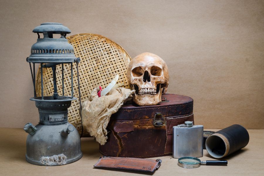 - Đặt đầu lâu vào vị trí bạn muốn trưng bày, có thể là trên bàn, trên cửa sổ, hoặc nơi nào bạn muốn tạo điểm nổi bật. Thêm các phụ kiện như mạng nhện giả, nhện giả, và quả mắc ca xung quanh đầu lâu để tạo không gian Halloween hoàn hảo.