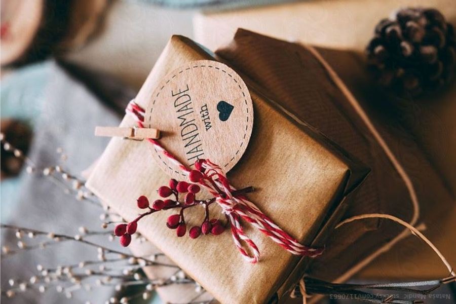 Đặc biệt hộp quà handmade sẽ giúp cho món quà giáng sinh của bạn trở nên ý nghĩa hơn. Thường những hộp quà handmade được làm bằng giấy xi măng nâu và được buộc bằng dây thừng nhỏ. Kiểu trang trí này tương tự như trang trí kiểu vintage.
