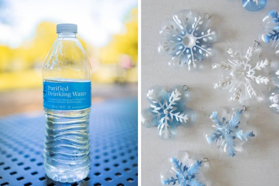 Với những chiếc chai nhựa không sử dụng đến, bạn có thể cắt tỉa để tạo thành những bông tuyết để trang trí không gian căn phòng trong dịp Noel này.