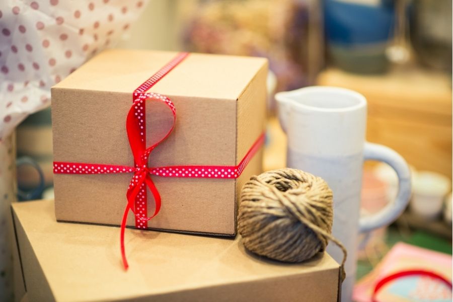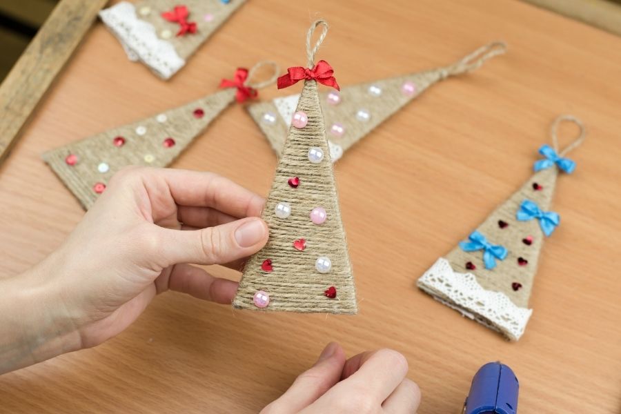 - Bước 4: Cuối cùng, bạn sử dụng 1 dải dây ruy băng màu đỏ hoặc màu sắc yêu thích để thắt nơ. Ngoài ra, có thể đính thêm một cành thông handmade, người tuyết, ông già noel cũng như kèm theo 1 tấm thiệp bé xinh để món quà thêm phần ý nghĩa.