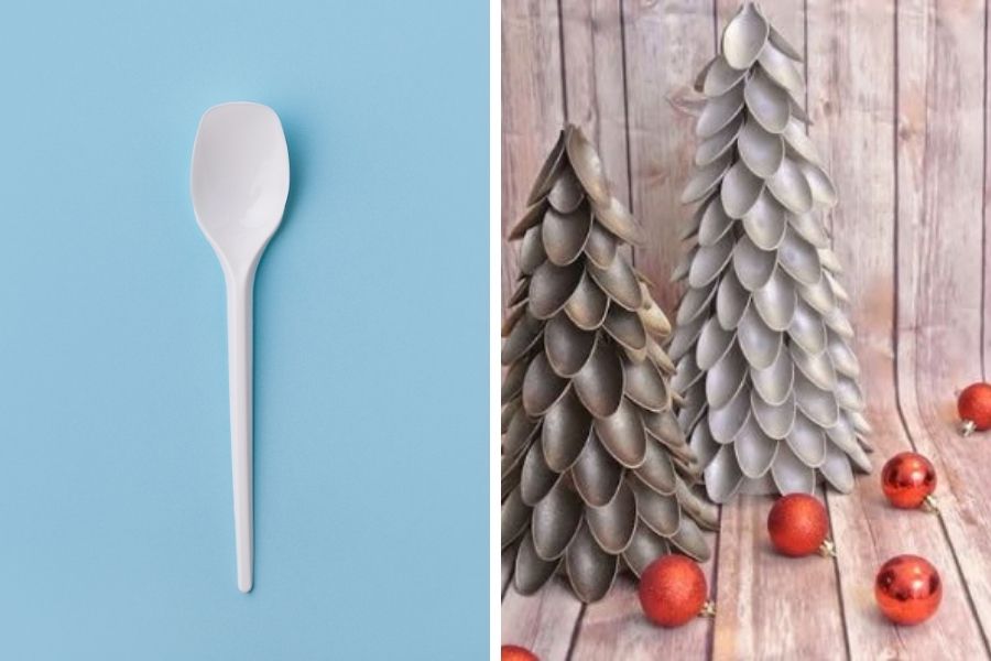 Một trong những ý tưởng trang trí Noel bằng đồ tái chế cực độc đáo mà bạn không nên bỏ qua là làm cây thông từ những chiếc muỗng (thìa) và chai nhựa. Cách làm cây thông Noel từ chai nhựa, thìa nhựa khá đơn giản với nguyên liệu dễ tìm, kết hợp cùng chút tỉ mỉ, khéo léo.
