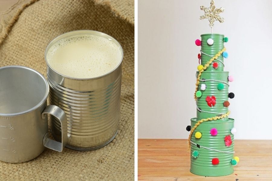 Thêm một ý tưởng làm cây thông Noel “chất phát ngất” mà bạn có thể áp dụng là tái chế những lon sữa đã dùng hết.