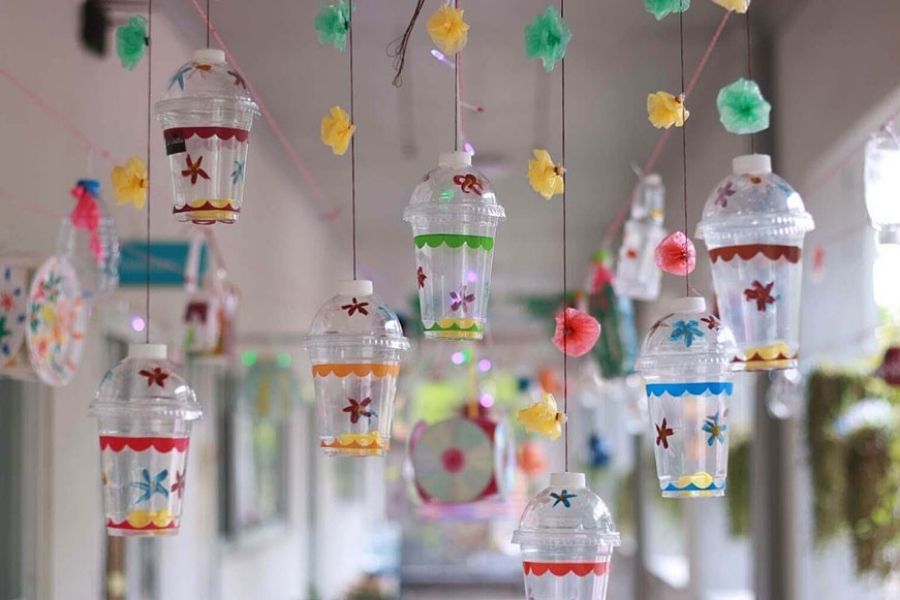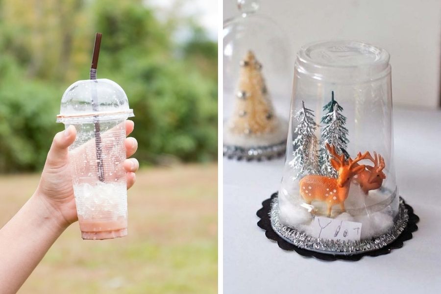 Ngoài việc làm cây thông, khu vườn mini hay người tuyết thì ly nhựa chọn được tái chế để làm những chiếc đèn độc đáo.