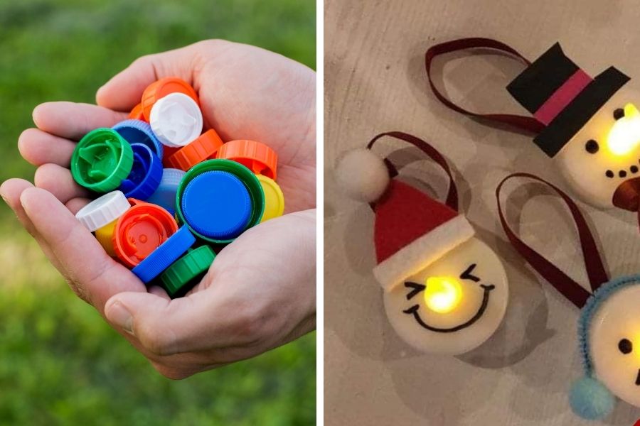 Ý tưởng trang trí Noel bằng nắp chai, nút chai