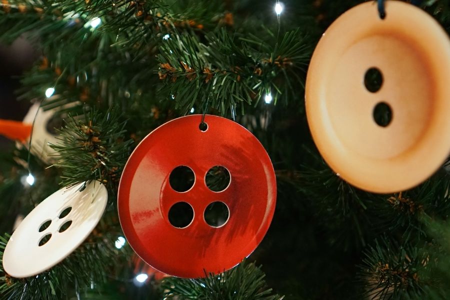 Một ý tưởng trang trí Noel bằng vật liệu tái chế khá phổ biến, được nhiều người áp dụng chính là dùng các nút áo nhiều kích cỡ, màu sắc.