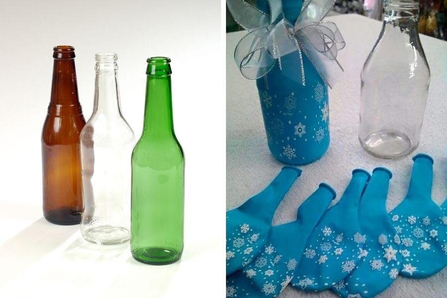 Làm đồ trang trí với chai thủy tinh và bong bóng