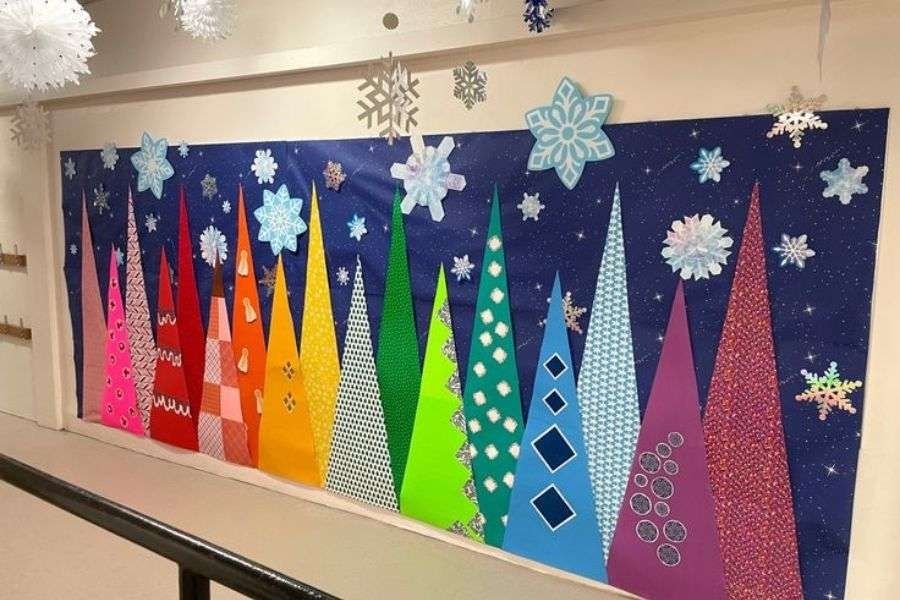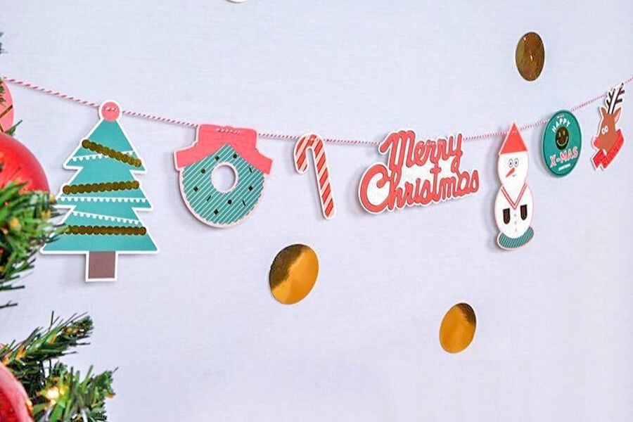Trang trí Noel mầm non với chữ treo tường và giấy màu