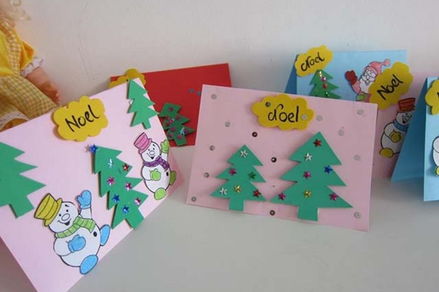 Ý tưởng trang trí Noel mầm non với thiệp Noel