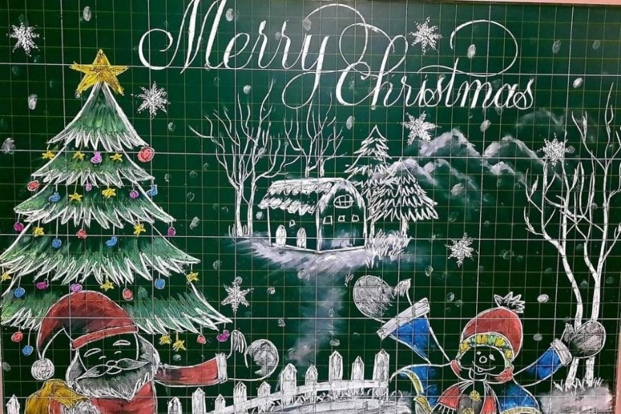 Ở trường mầm non, tường và bảng lớp Noel thường được trang trí rất đẹp và độc đáo. Mang đến sự vui tươi, giúp các em gần gũi và tập trung nhìn bảng học tập hơn.