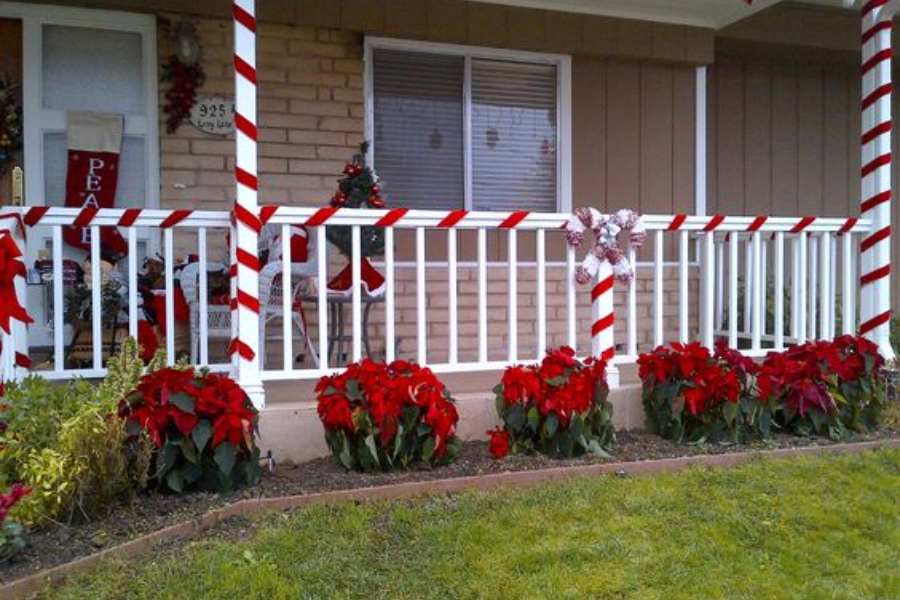 Trang trí Noel ngoài trời bằng chậu hoa là một ý tưởng tuyệt vời giúp cho không gian đêm Noel thêm phần sinh động. Bạn chỉ cần chuẩn bị sẵn các chậu hoa thường dùng vào ngày lễ này và đặt chúng xung quanh khu vực mà bạn muốn trang trí.