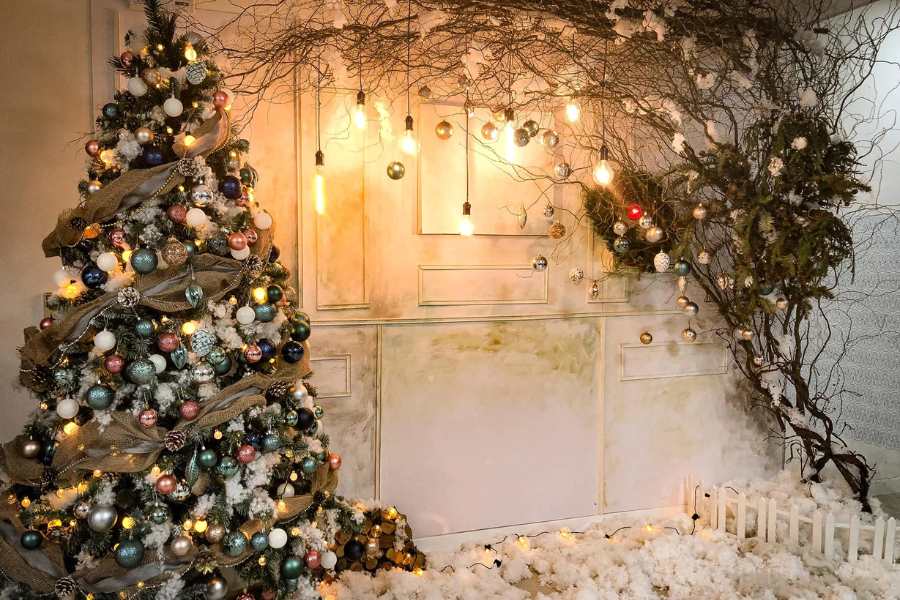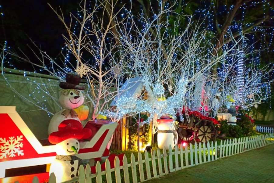 Trang trí Giáng Sinh ngoài trời với tuyết giả