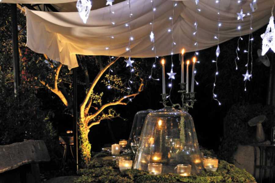 Đặt đèn dưới gốc cây tạo hiệu ứng hắt sáng từ các loại đèn