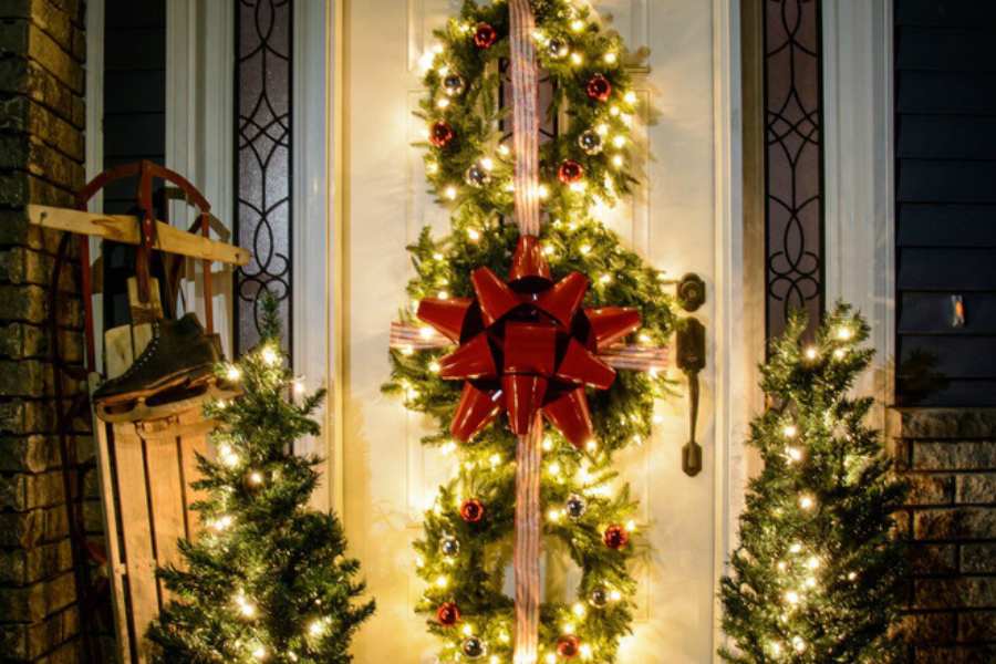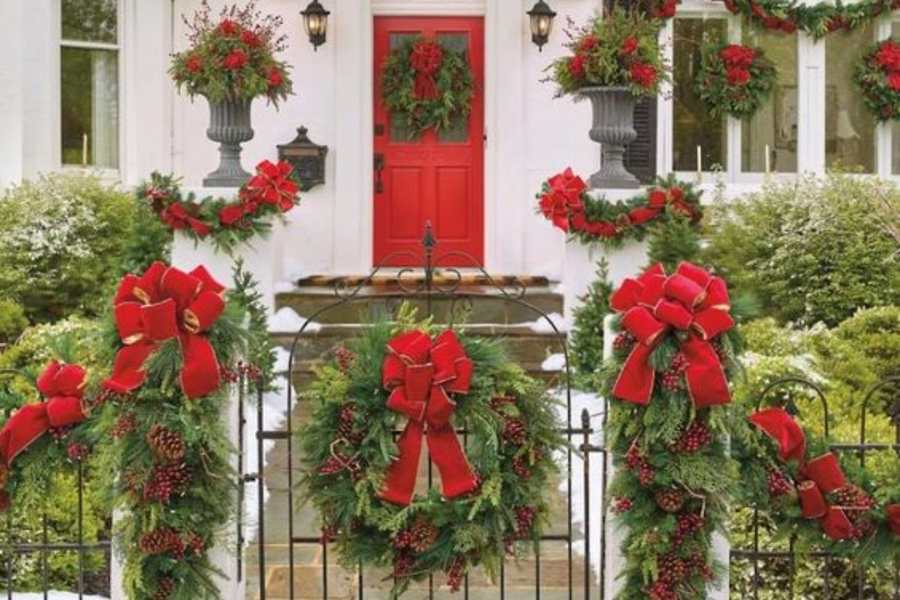 Trang trí Noel ngoài trời bằng vòng hoa (vòng nguyệt quế)