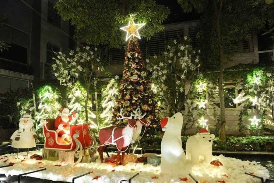- Trang bị mái che ngoài trời: Bạn nên trang bị thêm mái che cho khu vực trang trí Giáng Sinh để hạn chế ảnh hưởng của thời tiết (mưa, nắng gắt,…). Bên cạnh đó, mái che cũng sẽ giúp các phụ kiện được bền bỉ hơn.