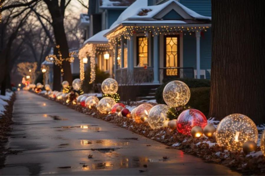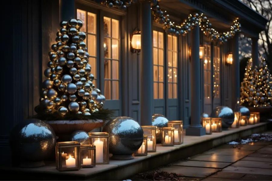 Sử dụng Quả châu để trang trí Giáng Sinh ngoài trời