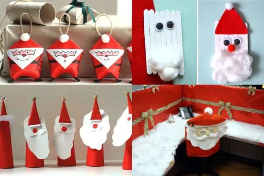 Nếu là một người khéo tay thì bạn có thể tự làm ông già Noel bằng giấy hoặc bông gòn để decor Giáng Sinh cho văn phòng. Các bạn chỉ cần sử dụng một số dụng cụ như: Bông gòn, mút, màu,…. là có thể tạo nên những món đồ trang trí tuyệt đẹp và “khoe” được sự khéo tay của mình.