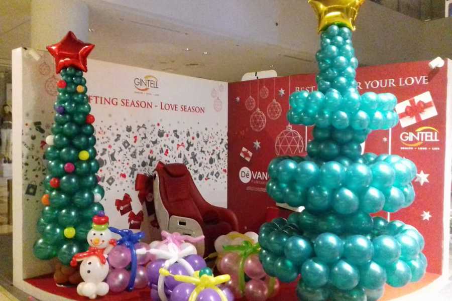 Ông già Noel và cây thông được tạo nên từ những chiếc bong bóng đơn lẻ lạ mắtBạn có thể đặt những bong bóng có họa tiết xung quanh cây thông để tạo hiệu ứng bắt mắt cho văn phòng.Ý tưởng trang trí tường Noel cho văn phòng từ những quả bong bóng hơi đầy màu sắc.Ý tưởng trang trí sảnh công ty với bóng hơi chú tuần lộc cùng tháp Noel từ bóng bay độc đáo.Phối cảnh trang trí Noel cho văn phòng với bức tường làm từ bong bóng và ông Noel bắt mắt.