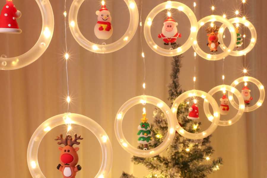 Những chiếc vòng đèn lấp lánh giúp cho văn phòng của bạn thêm sinh động hơn.Sử dụng những chiếc vòng đèn xen kẽ với đồ vật trang trí sẽ giúp văn phòng của bạn lấp lánh hơn.Bạn có thể gắn những chiếc vòng đèn lấp lánh lên các đồ vật tại văn phòng để tạo thắp sáng không gian.Mẫu vòng đèn trang trí với những nhân vật Noel sống động, giúp văn phòng thêm bắt mắt.Mẫu vòng đèn trang trí Noel cho văn phòng bằng thủy tinh sang trọng, lấp lánh.