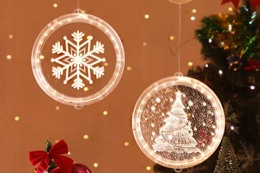 Đèn cốc nhựa làm hình cây thông, người tuyết