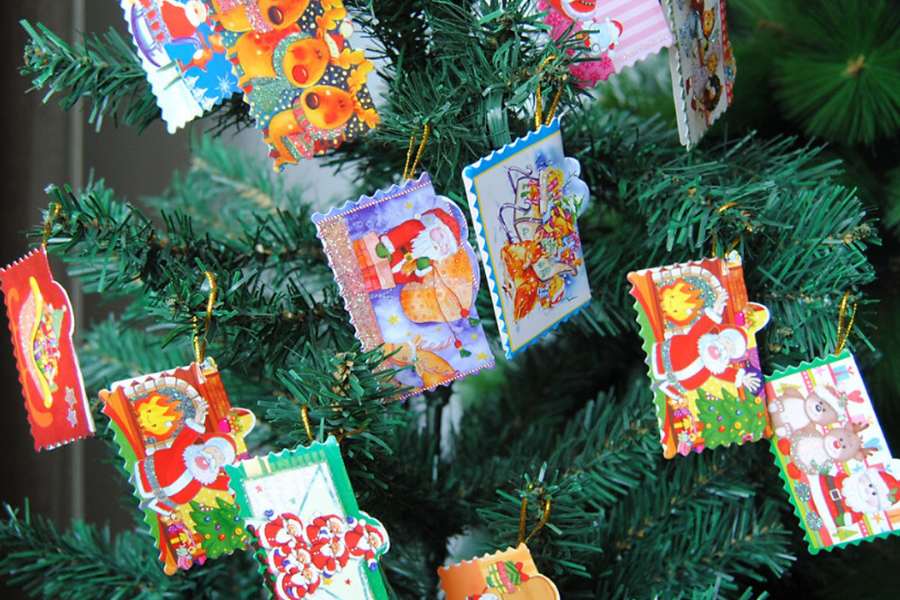 Dùng thiệp Giáng Sinh handmade để trang trí cho văn phòng làm việc không chỉ giúp không gian thêm đẹp mắt mà còn hỗ trợ tình cảm đồng nghiệp thêm gắn kết. Bạn có thể sử dụng thiệp từ các thành viên, sau đó gắn lên cây thông Noel hoặc treo xung quanh để văn phòng thêm bắt mắt.