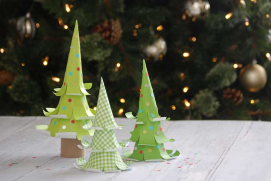 Nếu đang băn khoăn không biết nên trang trí Giáng Sinh cho văn phòng làm việc như thế nào thì bạn có thể tự tay làm ngay một cây thông handmade xinh xắn. Với cách trang trí này, bạn chỉ cần chuẩn bị một số dụng cụ như: Giấy màu (xanh, đỏ,…), bìa carton, ruy băng, chuông Noel bằng giấy,…. là có thể thực hiện.