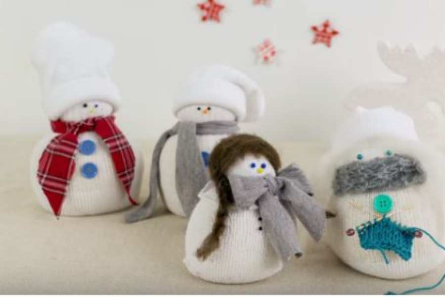 Trang trí Noel văn phòng bằng người tuyết làm từ bông gòn