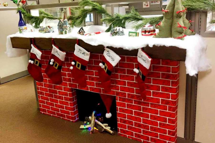 Treo một vài chiếc tất Giáng Sinh lên các góc tường sẽ giúp văn phòng thêm sinh động và bắt mắt hơn.Mẫu trang trí bàn làm việc tại văn phòng với những chiếc tất và phụ kiện Giáng Sinh xinh xắn.Bạn có thể đặt một vài chiếc tất Giáng Sinh lên xung quanh khu vực lò sưởi để làm tăng thêm không khí Noel cho văn phòng.Mẫu trang trí Noel cho văn phòng với những chiếc tất đỏ nổi bật được treo trước cửa ra vào.Bạn có thể trang trí tất Giáng Sinh cùng nhiều phụ kiện khác như ruy băng, ngôi sao,… để văn phòng thêm lung linh.