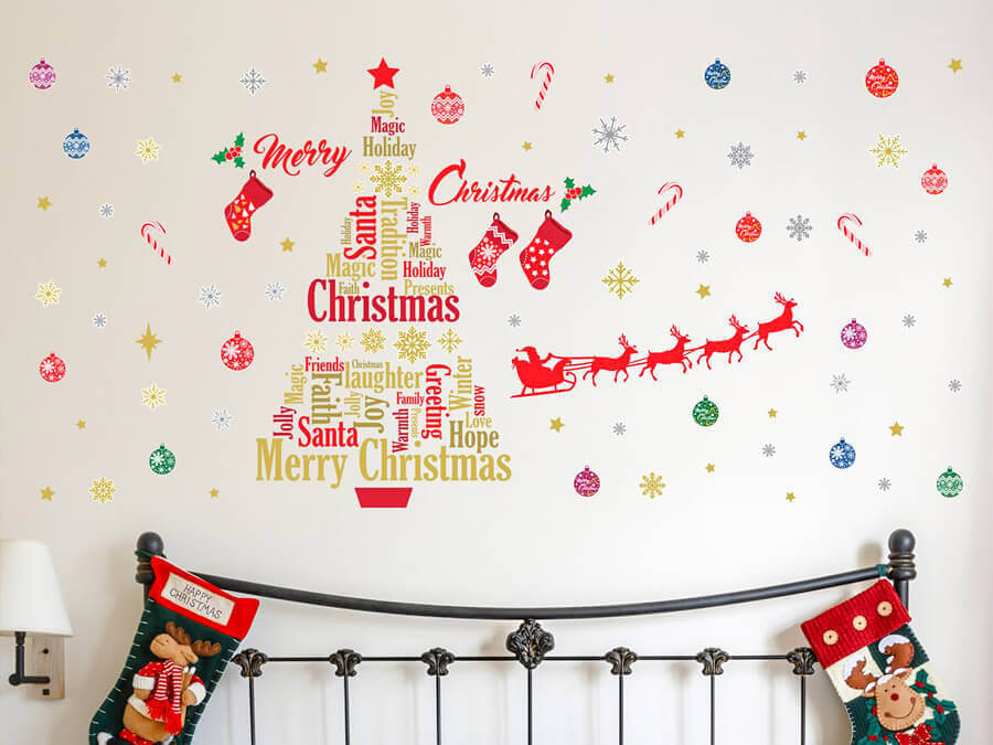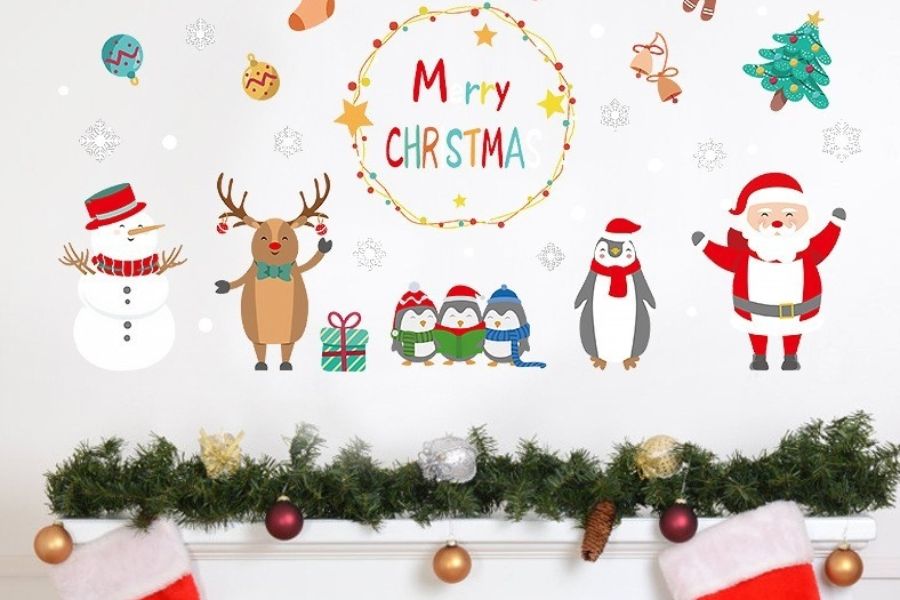 Sử dụng những miếng dán decal hình ông già Noel, hình ảnh những bông tuyết, tuần lộc hay cây thông để dán lên tường sẽ khiến cho căn phòng trở nên sinh động hơn.