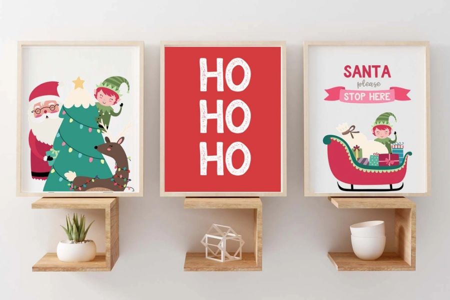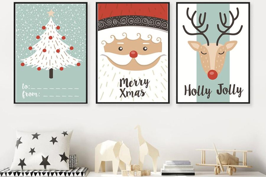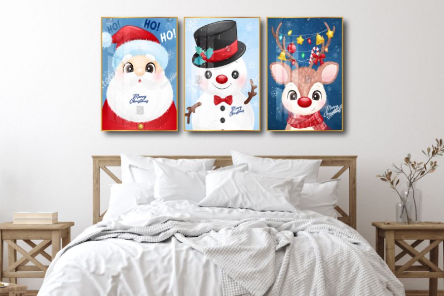 Những bức tranh treo tường theo chủ đề Giáng Sinh sẽ biến những bức tường đơn điệu, xấu xí trong phòng ngủ của bạn trở nên ấn tượng và lung linh hơn.
