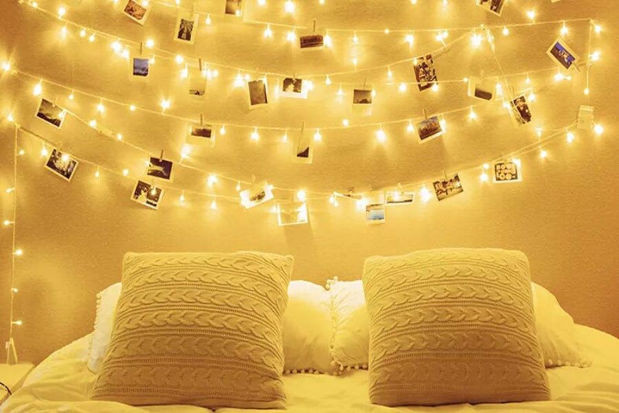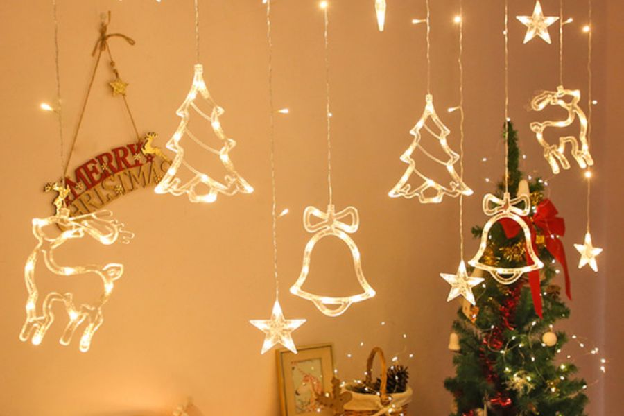 Đừng quên sử dụng đèn led để trang trí thông qua việc tạo hình những cây thông, hình ngôi sao, hay những dòng chữ Giáng sinh,… chúng sẽ giúp cho căn phòng trở nên bắt mắt và lung linh hơn.