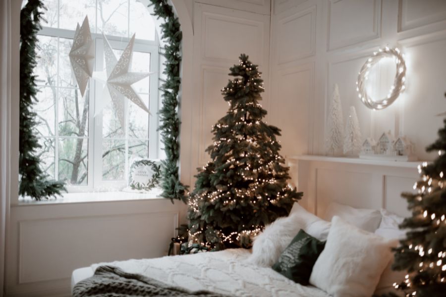 Cây thông Noel xưa nay được xem như là “linh hồn” của mùa Giáng Sinh, vì đây chính là món đồ trang trí không thể thiếu của mọi nhà. Do đó, sử dụng cây thông Noel để trang trí phòng ngủ sẽ mang lại một cảm giác bình an và ấm cúng.