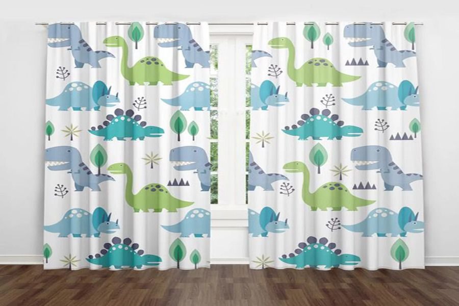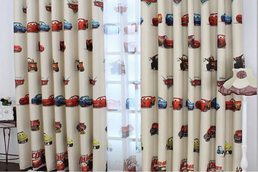 Rèm cửa có những họa tiết hoa lá, hoạt hình sẽ tạo ra không gian sống động và giúp các bé hứng thú với môi trường học tập.