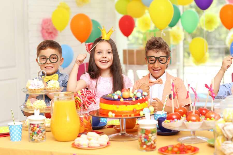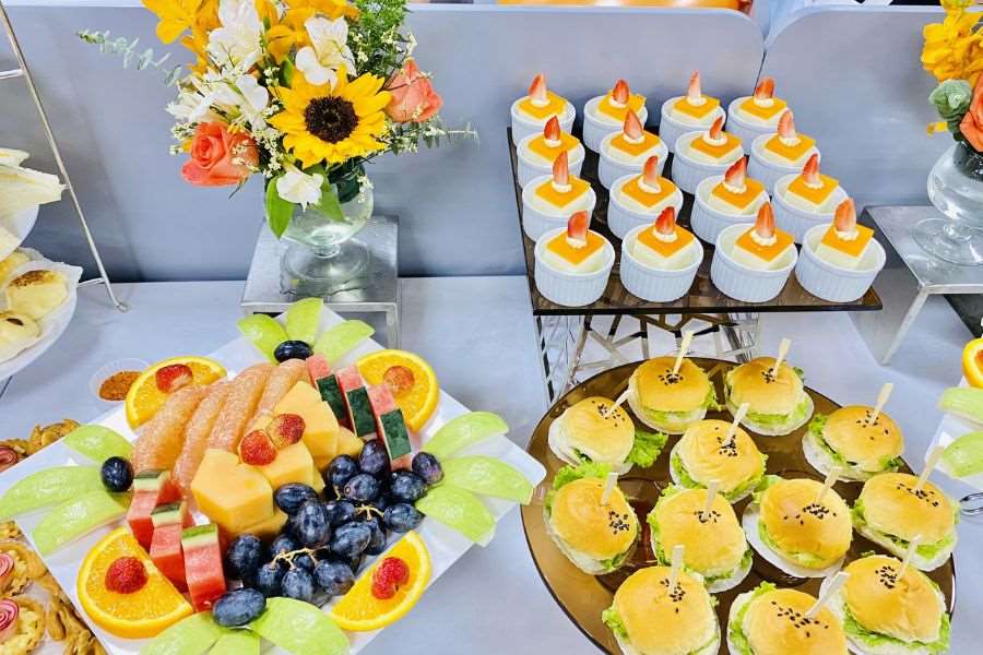 - Bày biện những món ăn vặt mà trẻ yêu thích như kẹo, bánh ngọt, hoa quả, bánh sinh nhật.