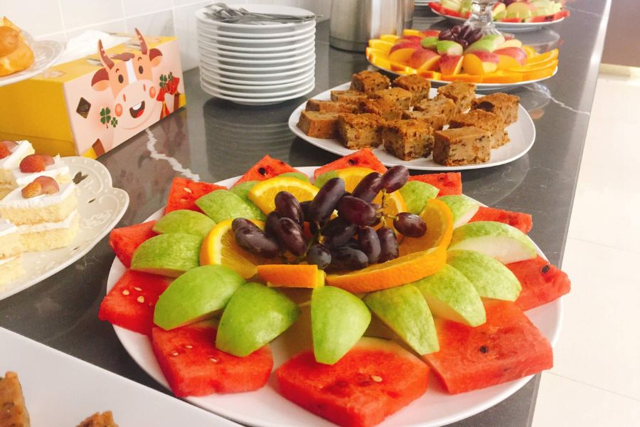 Trên bàn tiệc sinh nhật của bé thường có những đĩa hoa quả tươi. Đây không chỉ là một món ăn mà còn là một chi tiết trang trí, giúp không gian bữa tiệc thêm đẹp mắt và sinh động hơn.