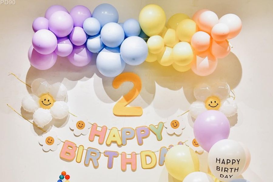 Bên cạnh những loại bóng bay chữ “Happy Birthday”, các bạn cũng có thể thay thế bằng những chùm bong bóng màu sắc, đơn giản thường thấy. Đây là một cách trang trí tiện lợi, tiết kiệm chi phí mà vẫn vô cùng đẹp mắt.