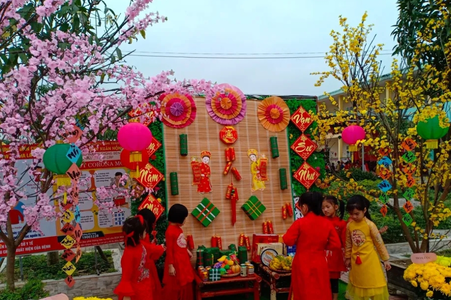 Hoa mai vàng rực rỡ, hoa đào hồng tươi thắm sẽ phủ kín những bức tường lớp học, đem không khí xuân ấm áp và rộn ràng đến gần hơn với các bé.