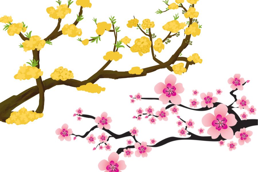 - Chọn hoa mai, hoa đào giả có màu sắc tươi tắn, tự nhiên.