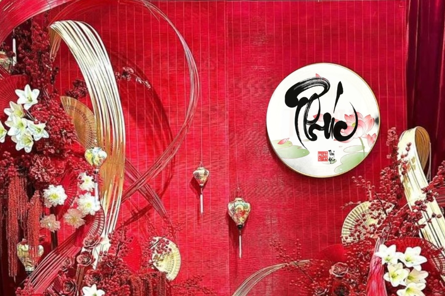 - Sử dụng phông nền đỏ, vàng hoặc họa tiết truyền thống.