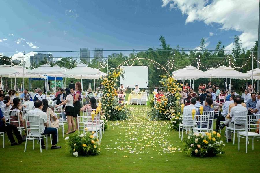 Trang trí không gian tiệc cưới với khu vườn cỏ cây, hoa lá là một ý tưởng tuyệt vời để tạo ra không gian ấn tượng và gần gũi với thiên nhiên cho đám cưới của bạn: