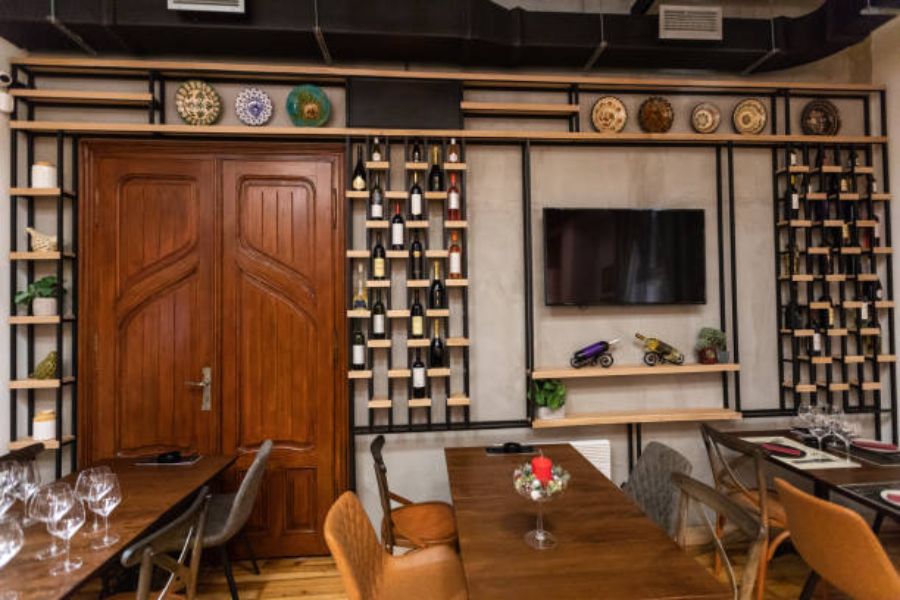 Trang trí không gian sống: Tủ rượu trở thành một phần quan trọng trong việc trang trí không gian sống đẹp và hiện đại. Nhiều gia chủ còn biến tấu tủ rượu thành vách ngăn phòng tạo nên nét riêng biệt mới mẻ cho không gian. - Những lưu ý khi lựa chọn đồ trang trí tủ rượu