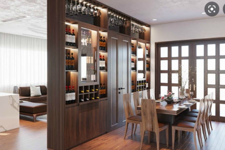 Hơn nữa, đặt tủ rượu tại khu vực này vừa giúp bạn thuận tiện trong việc sử dụng loại rượu yêu thích, vừa có thể tùy theo tính chất của từng bữa ăn, bữa tiệc mà lựa chọn những chai rượu phù hợp với gia đình.