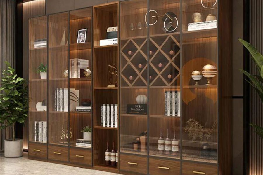 Tủ rượu không chỉ dành riêng cho những người đam mê rượu mà còn thể hiện óc sáng tạo của gia chủ. Tủ rượu sẽ giúp gia chủ trưng bày những chai rượu quý mà họ được biếu, tặng hoặc mua.
