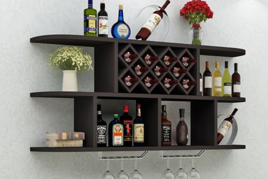 Ưu điểm lớn nhất của kệ rượu treo tường là chúng nhỏ gọn và tiết kiệm diện tích. Kệ rượu treo tường thường được thiết kế thông minh, có thể giúp bạn sắp xếp các chai rượu, ly, cốc và các phụ kiện khác một cách ngăn nắp và vẫn đảm bảo tính thẩm mỹ.