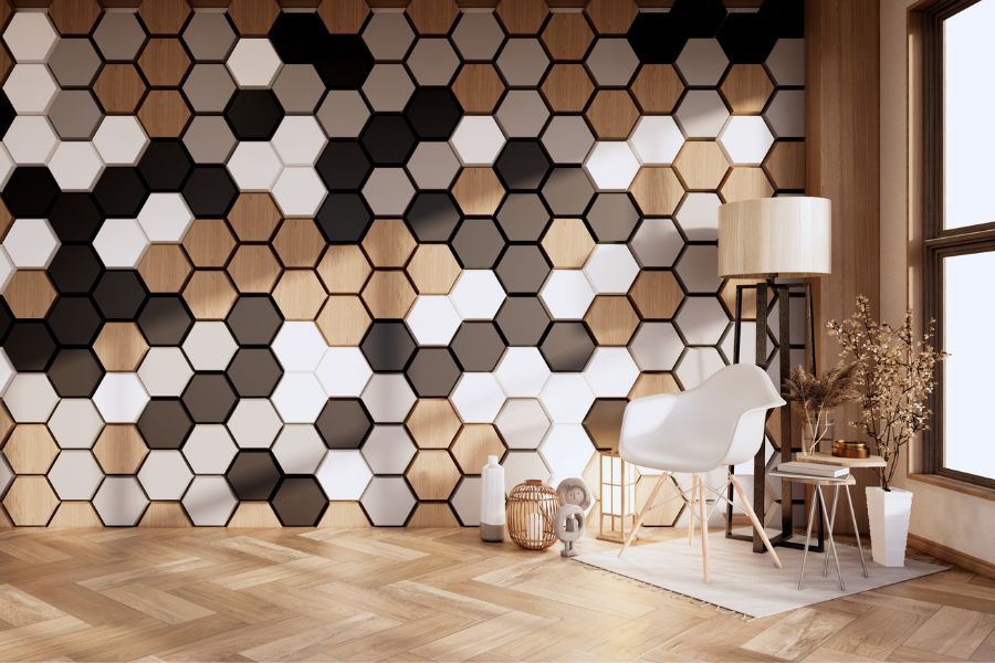 - Tấm ốp tường bằng gỗ.
