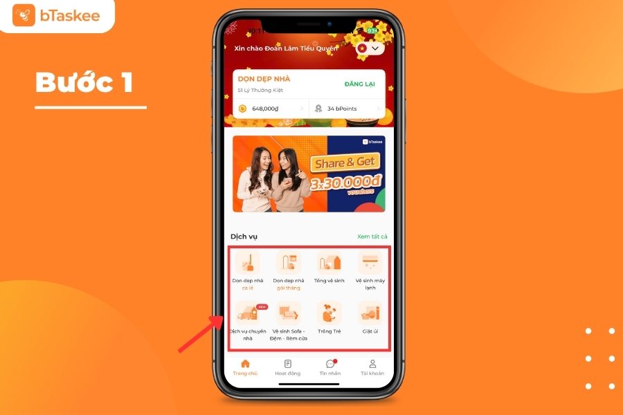 Hướng Dẫn 4 Bước Đặt Dịch Vụ Trên App bTaskee