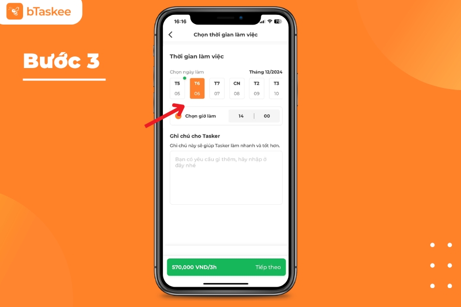 Bước 3: Chọn thời gian thực hiện dịch vụ