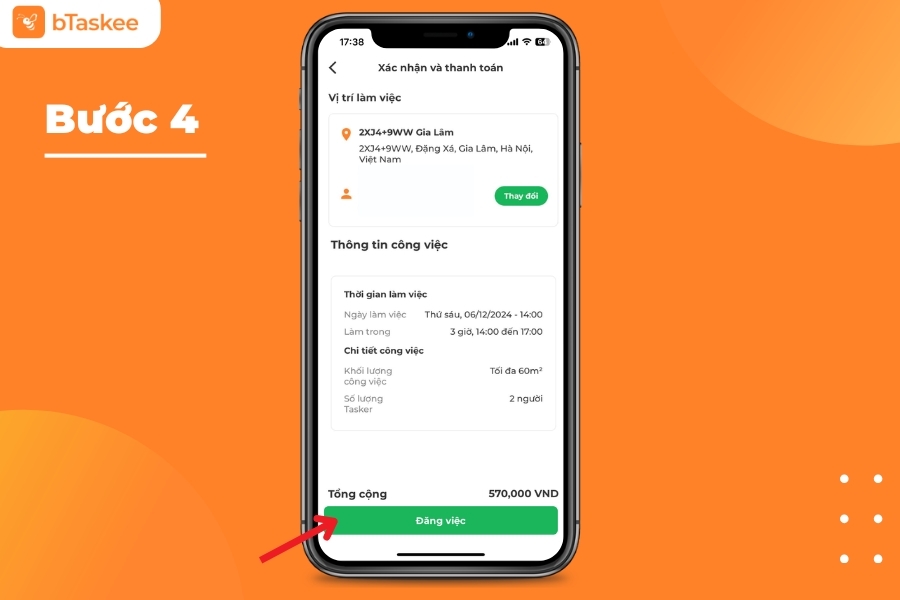 Bước 4: Xác định thông tin, phương thức thanh toán và chọn “Đăng việc”
