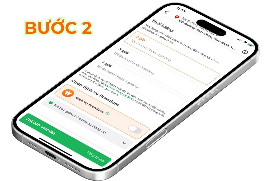 - Nhập địa chỉ và chọn gói dịch vụ phù hợp (thời gian: 30 giây) – Từ gói 2 giờ đến 4 giờ tùy theo diện tích nhà