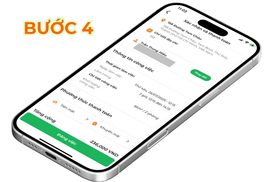 - Xác nhận thông tin và thanh toán (thời gian: 45 giây) – Hỗ trợ thanh toán online hoặc tiền mặt